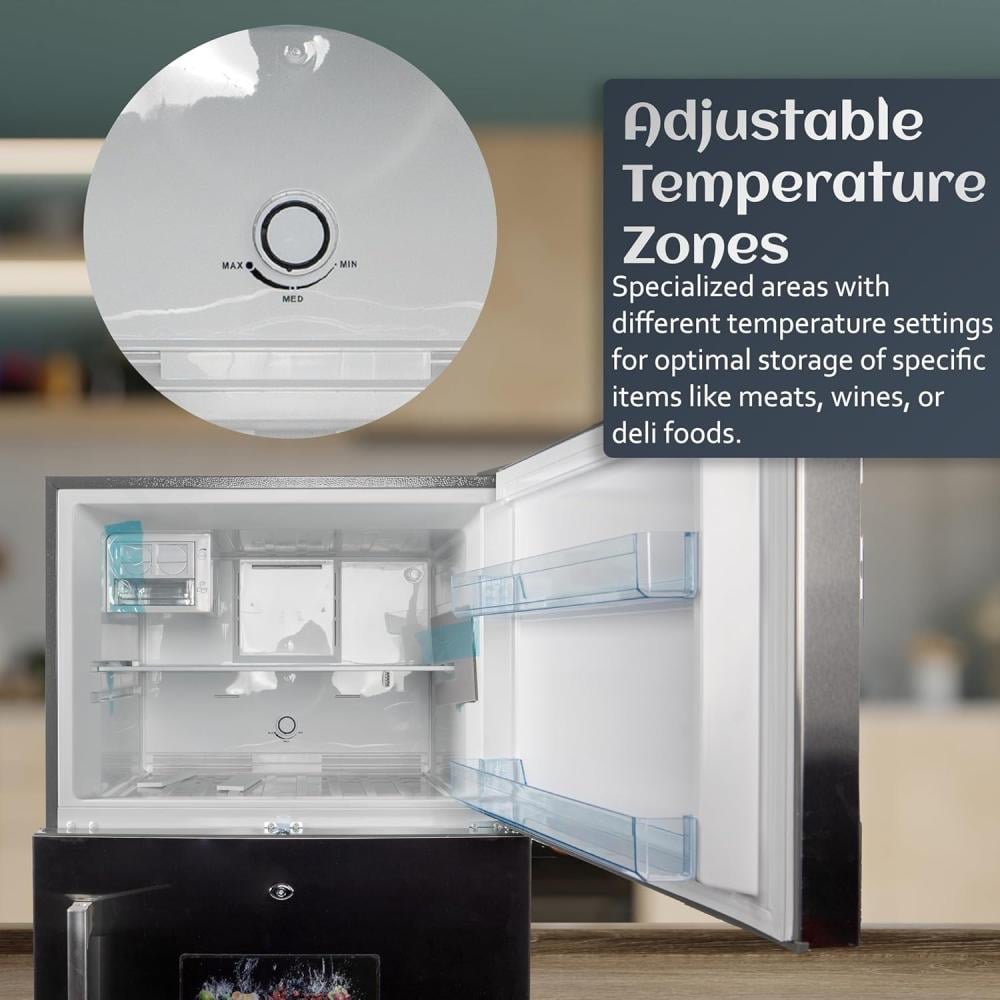تمتاز بشاشة عرض رقمية تسهل عملية التحكم في درجة التبريد، وإضاءة LED داخلية توفر رؤية واضحة للمحتويات. مصنوعة من مواد عالية الجودة تضمن متانة ومقاومة للتآكل، مع ميزة التشغيل الصامت للحفاظ على الهدوء في المنزل. يتميز المقبض بتصميم أنيق يسهل الفتح، وتقليل استهلاك الطاقة بفضل استخدام غاز التبريد R600-a الذي يحافظ على الكفاءة البيئية.