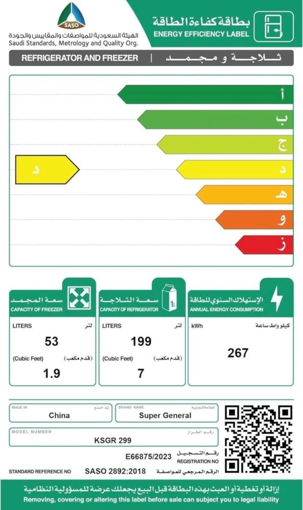 هل تبحث عن ثلاجة تجمع بين التصميم الأنيق والكفاءة العالية؟ ثلاجة سوبر جنرال البابين هي الخيار الأمثل للحفاظ على طعامك طازجًا مع تشغيل هادئ واستهلاك اقتصادي للطاقة.