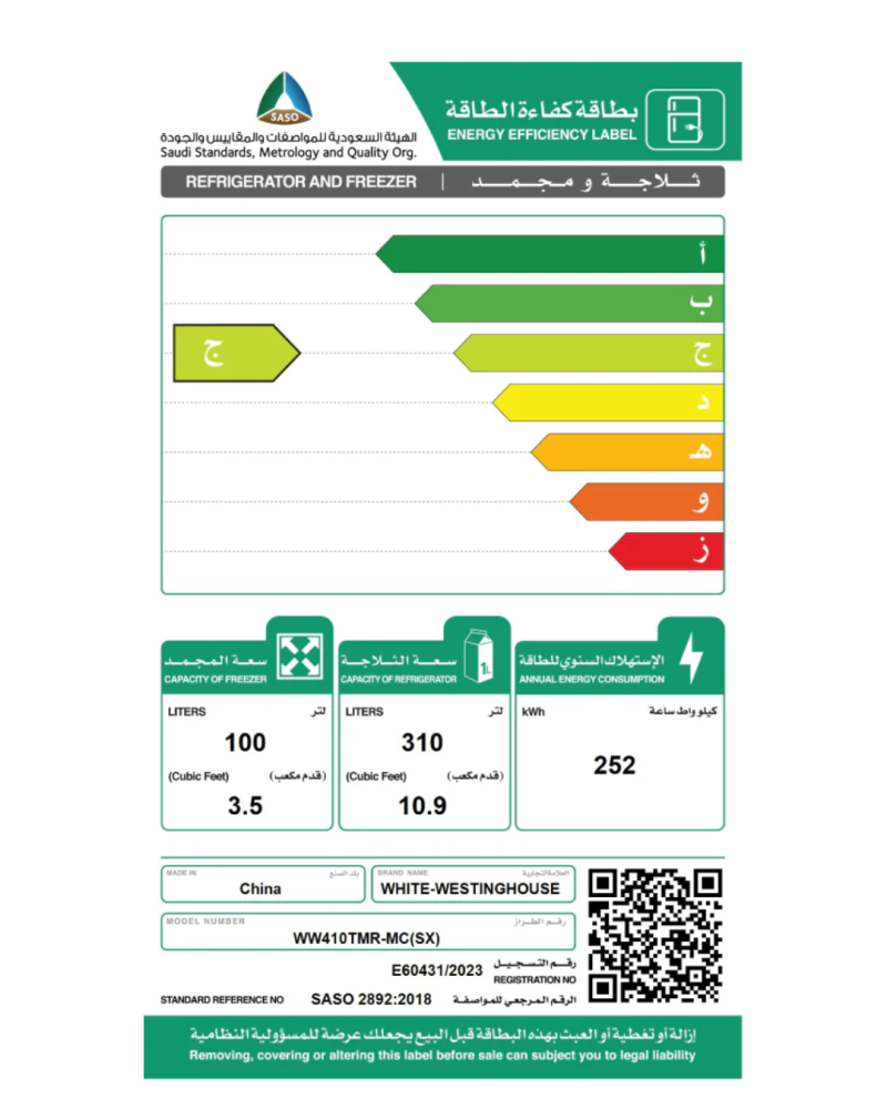 مواصفات ثلاجة وايت وستنجهاوس بابين 14.5 قدم: