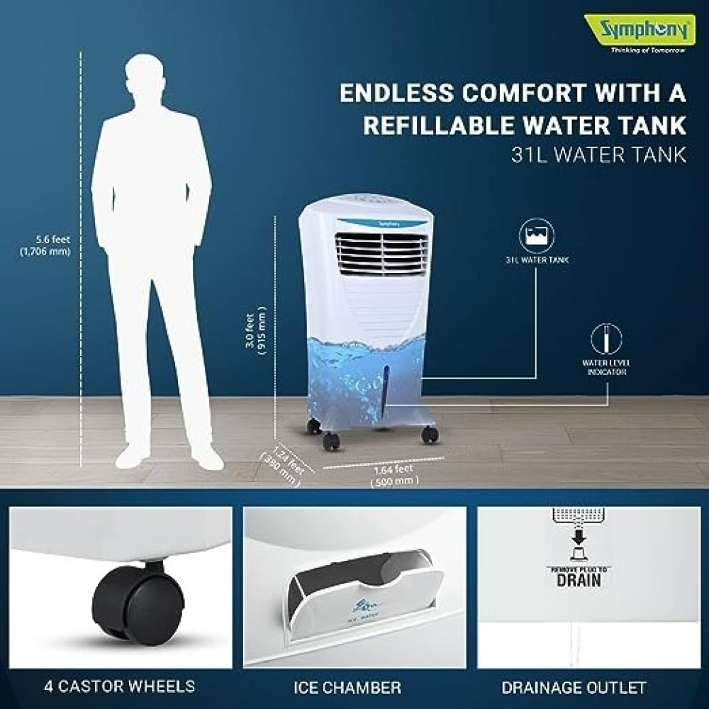 هل تبحث عن حلّ للتغلب على حرارة الصيف؟ إليك المكيف الصحراوي سيمفوني 31 لتر، سرّ الراحة والانتعاش! استمتع بجو منعش ومريح دون عناء مع هذا المكيف الذي يجمع بين الأناقة والأداء الفائق.