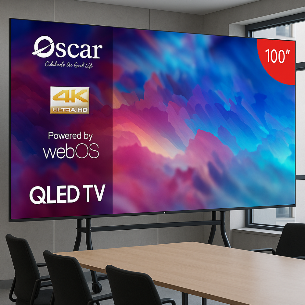 شاشة اوسكار 100 بوصة QLED سمارت ويبوس 4K مع حامل ارضي