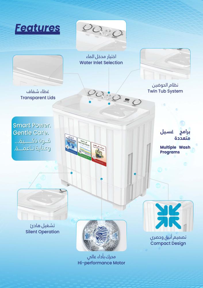 النوع: غسالة حوضين (نصف أوتوماتيك)