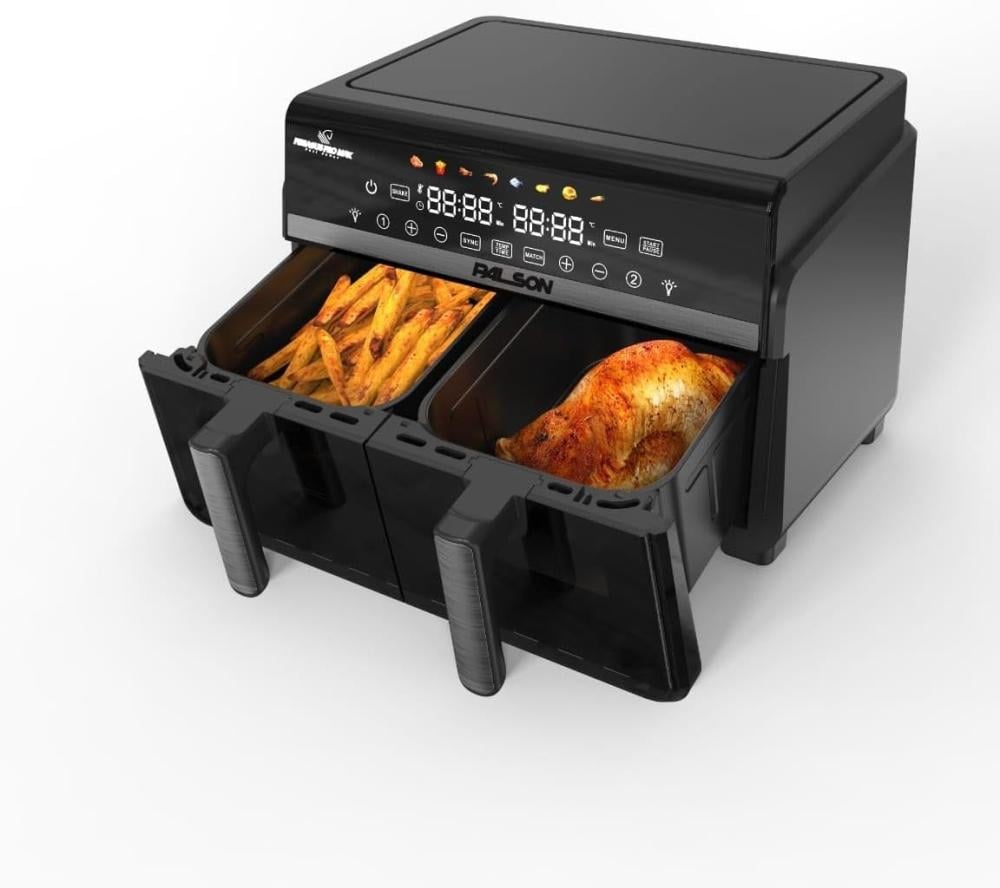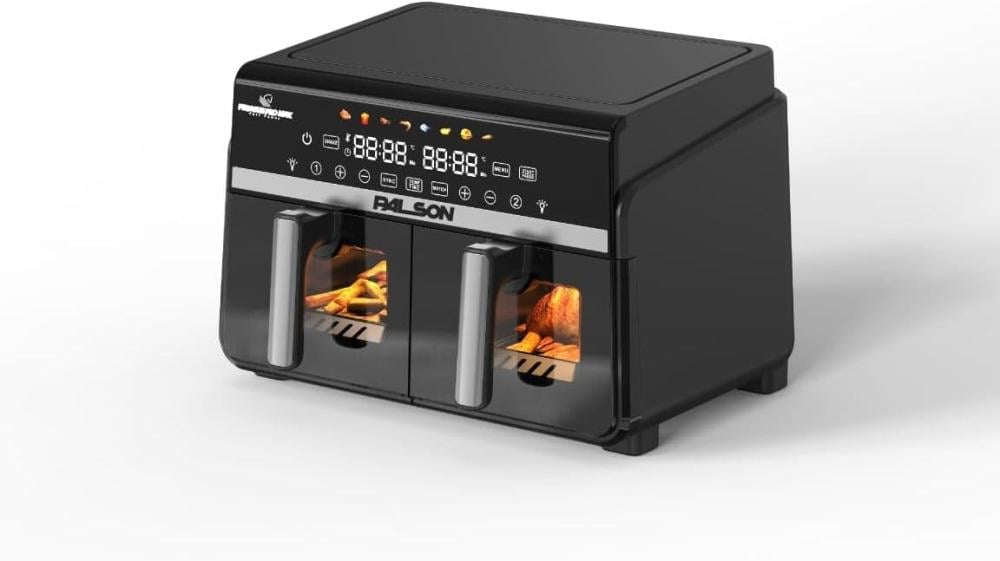مقلاة هوائية رقمية من بالسون بسعة 10 لتر مقسمة إلى درجين منفصلين (5 لتر + 5 لتر) لتتمكن من طهي أطباق متعددة في نفس الوقت.