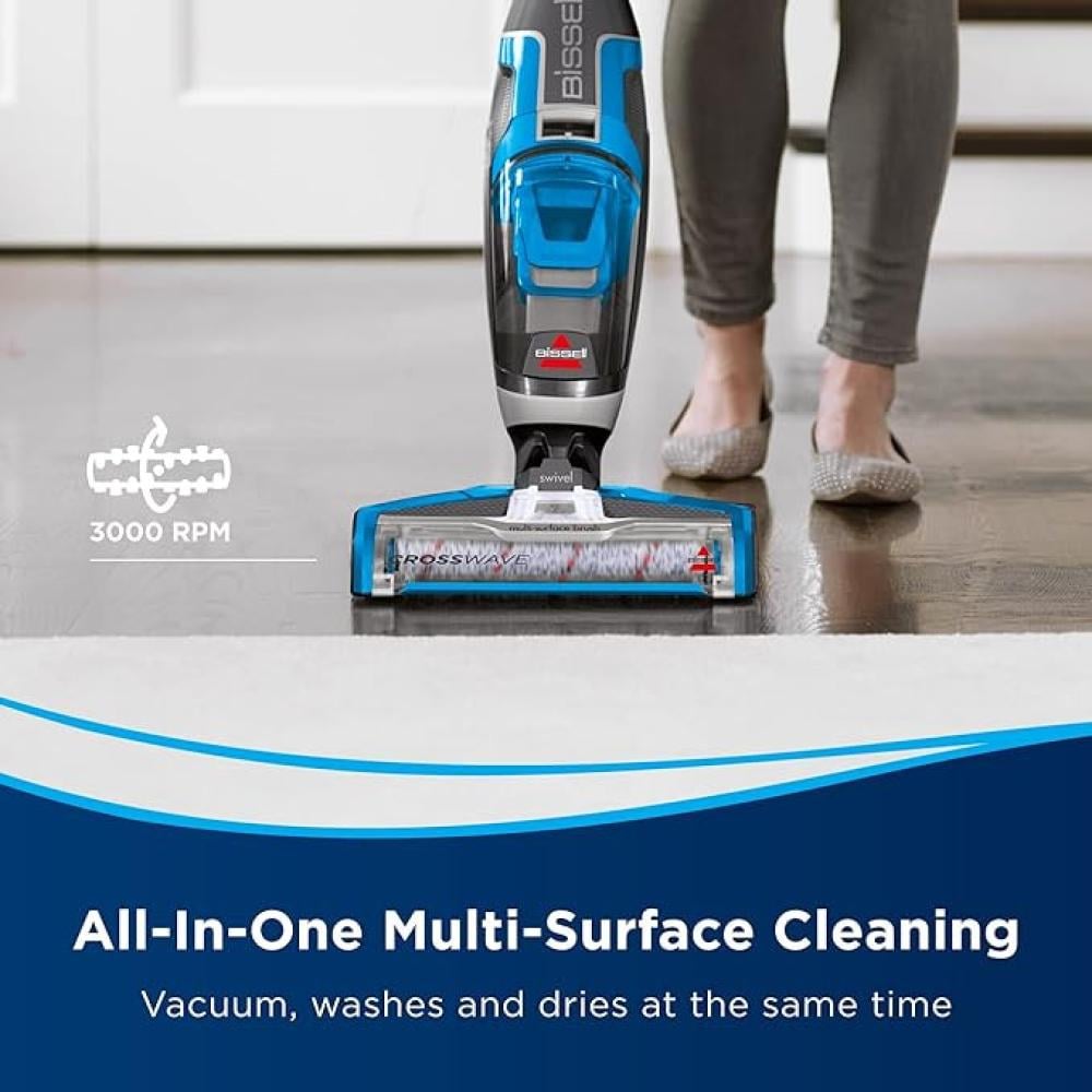 حوّلي تنظيف منزلك إلى مهمة سهلة وسريعة مع مكنسة بيسيل CrossWave العمودية، المصممة لتنظيف عميق ومتعدد الاستخدامات.