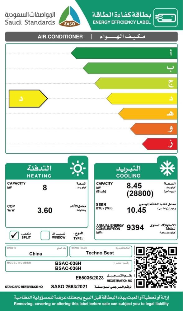 - استهلاك الطاقة السنوي: 9394 كيلو واط في الساعة