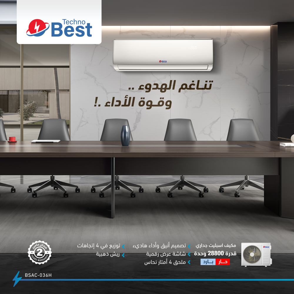 استمتع بأجواء باردة ومريحة في منزلك مع مكيف سبليت 28800 وحدة تكنو بيست: