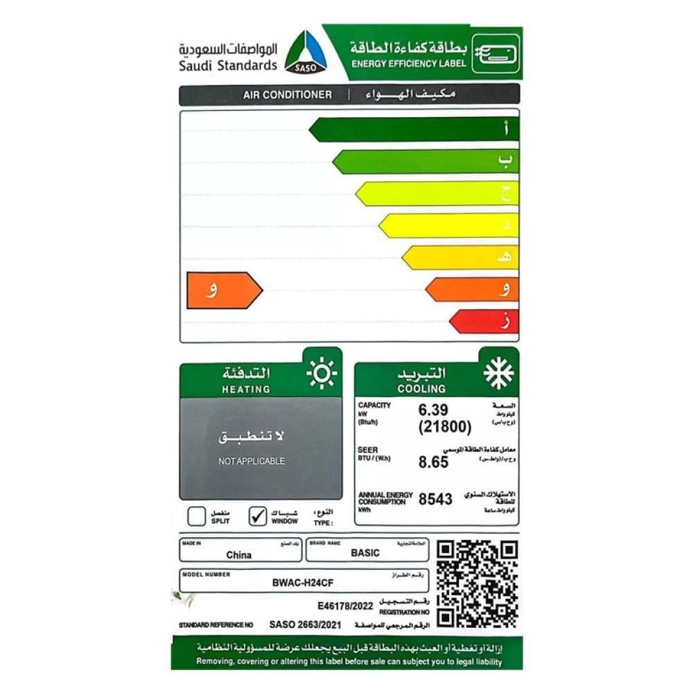مكيف شباك بيسك 24 بارد – BWAC-H24CFاحصل على تجربة تبريد مثالية في أيام الصيف الحارة مع مكيف الشباك بيسك موديل BWAC-H24CF، المصمم لتوفير أداء قوي وكفاءة عالية مع الحفاظ على استهلاك منخفض للطاقة.
