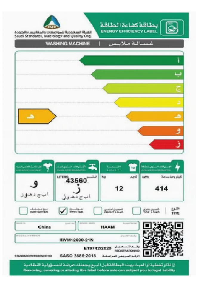 • كفاءة في الطاقة رغم الأداء العالي: غسالة هام استهلاك منخفض للطاقة مقارنة بالحجم والقدرة، لتوفير فواتير الكهرباء.