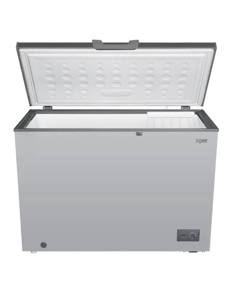 مع فريزر اكسبير الأفقي 11.2 قدم مكعب، استمتع بتخزين كميات كبيرة من الطعام بكل سهولة وكفاءة. تصميمه الفضي العصري مع الإضاءة الداخلية LED يضمن لك رؤية واضحة للمحتويات، بينما توفر خاصية القفل والمفتاح أمانًا إضافيًا لتخزين آمن.