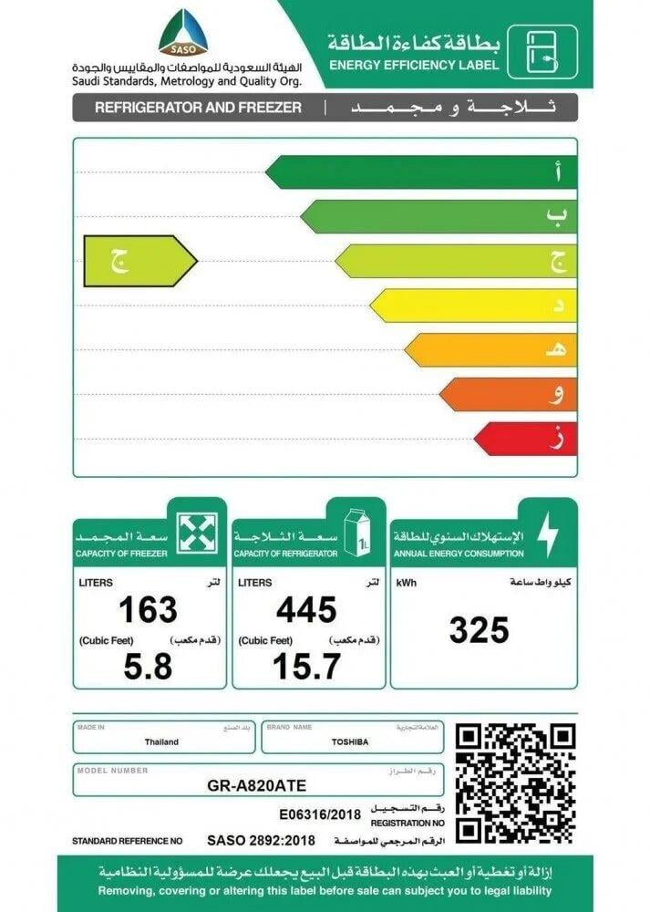 - سعة الثلاجة: 445