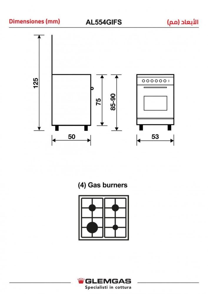 مواصفات موقد طبخ وفرن - موديل AL554GIFS