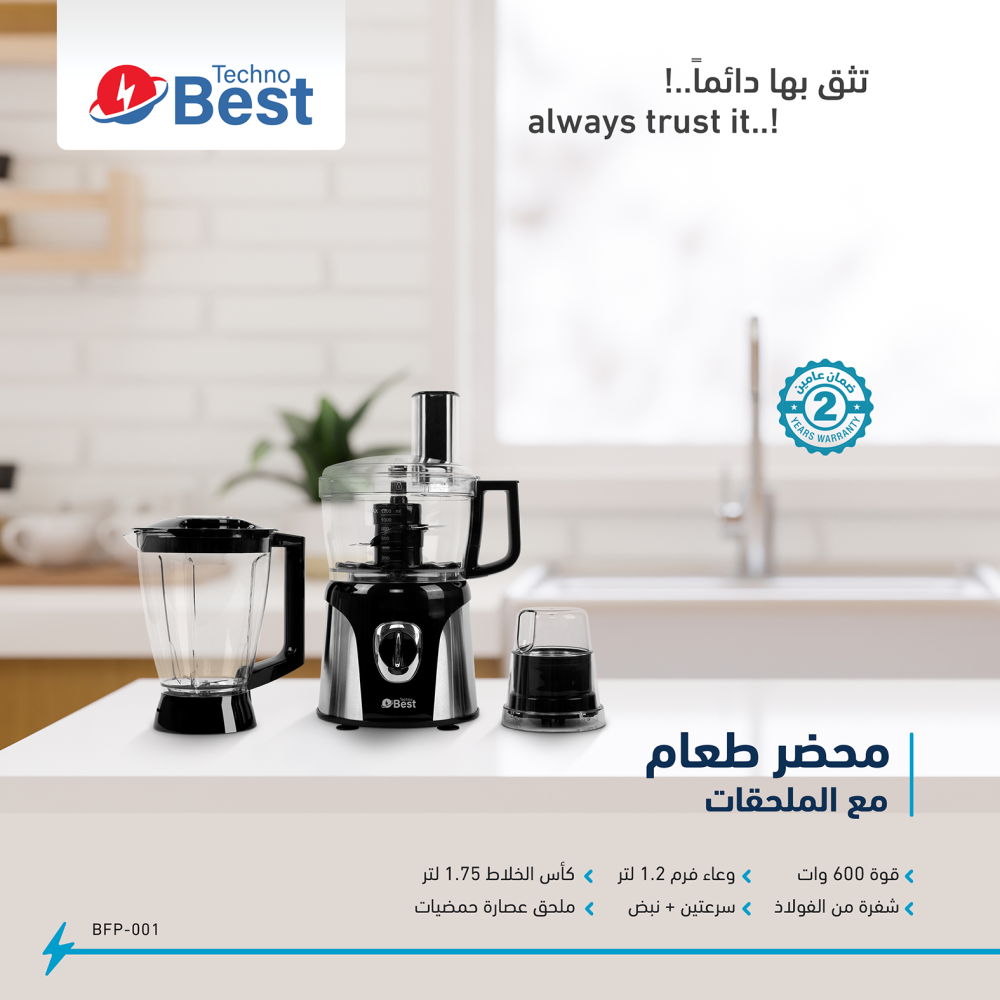 محضر الطعام تكنو بيست 600 واط – كل ما تحتاجه في جهاز واحد!